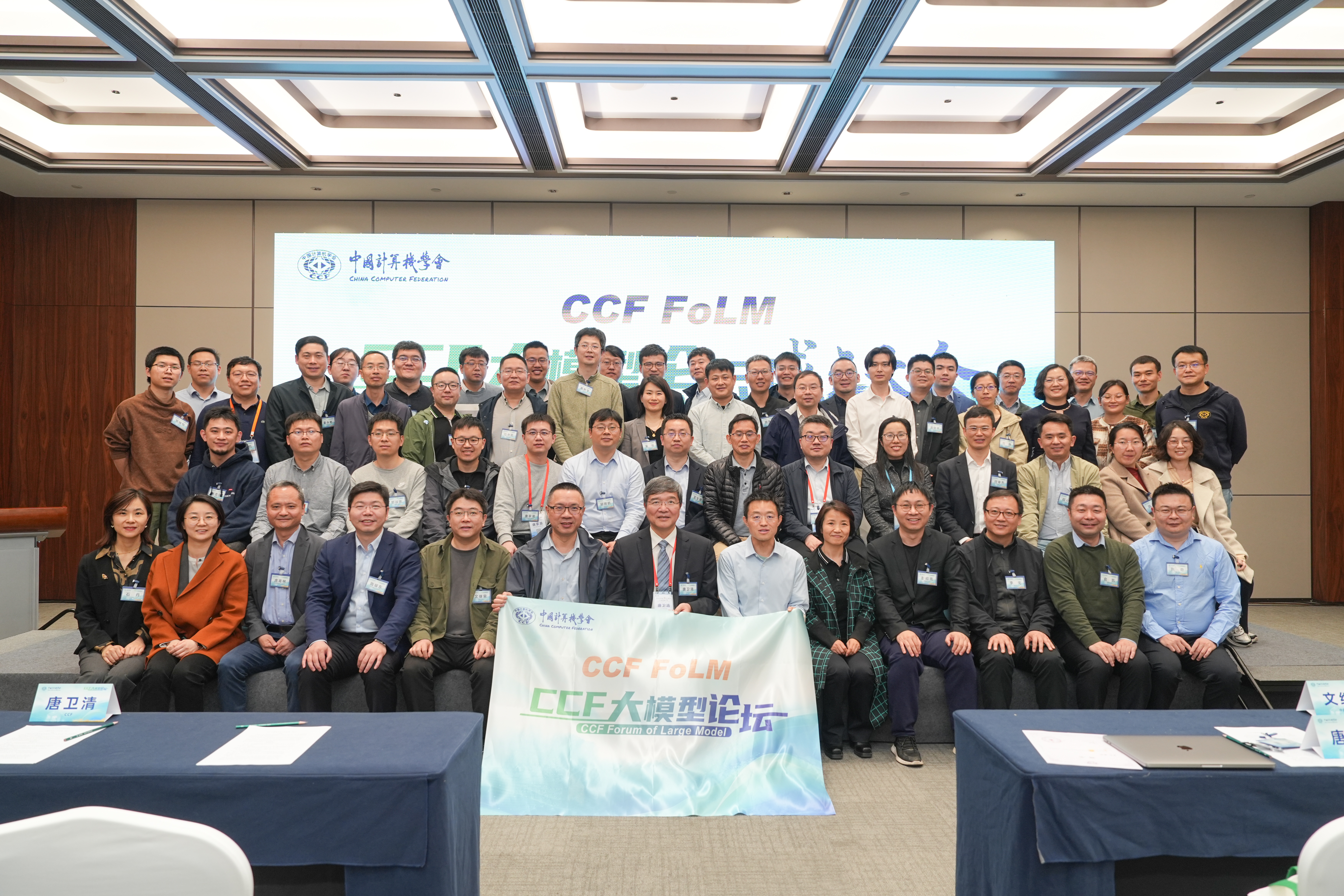 CCF大模型论坛首届主席由清华大学唐杰教授担任,副主席由中国人民大学文继荣教授、中国移动集团级首席科学家冯俊兰、华为语音语义首席科学家刘群担任,学术秘书由复旦大学邱锡鹏教授、清华大学东昱晓副教授、智谱AI副总裁李文珏担任。CCF秘书长唐卫清为当选的首届主席会议成员授旗。